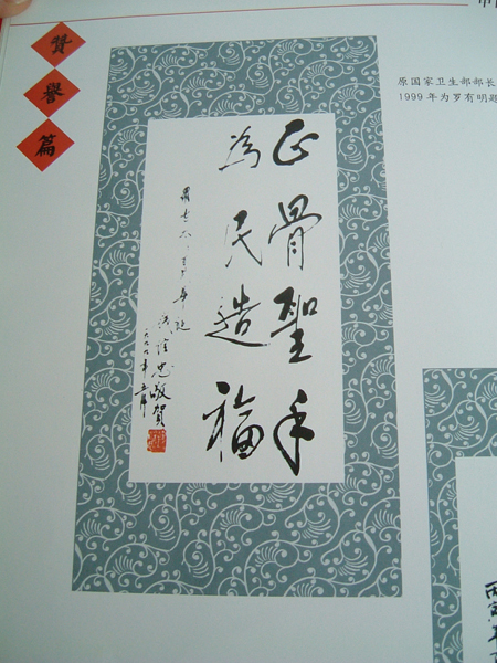 原国家卫生部部长钱信忠1999年为罗有明题词